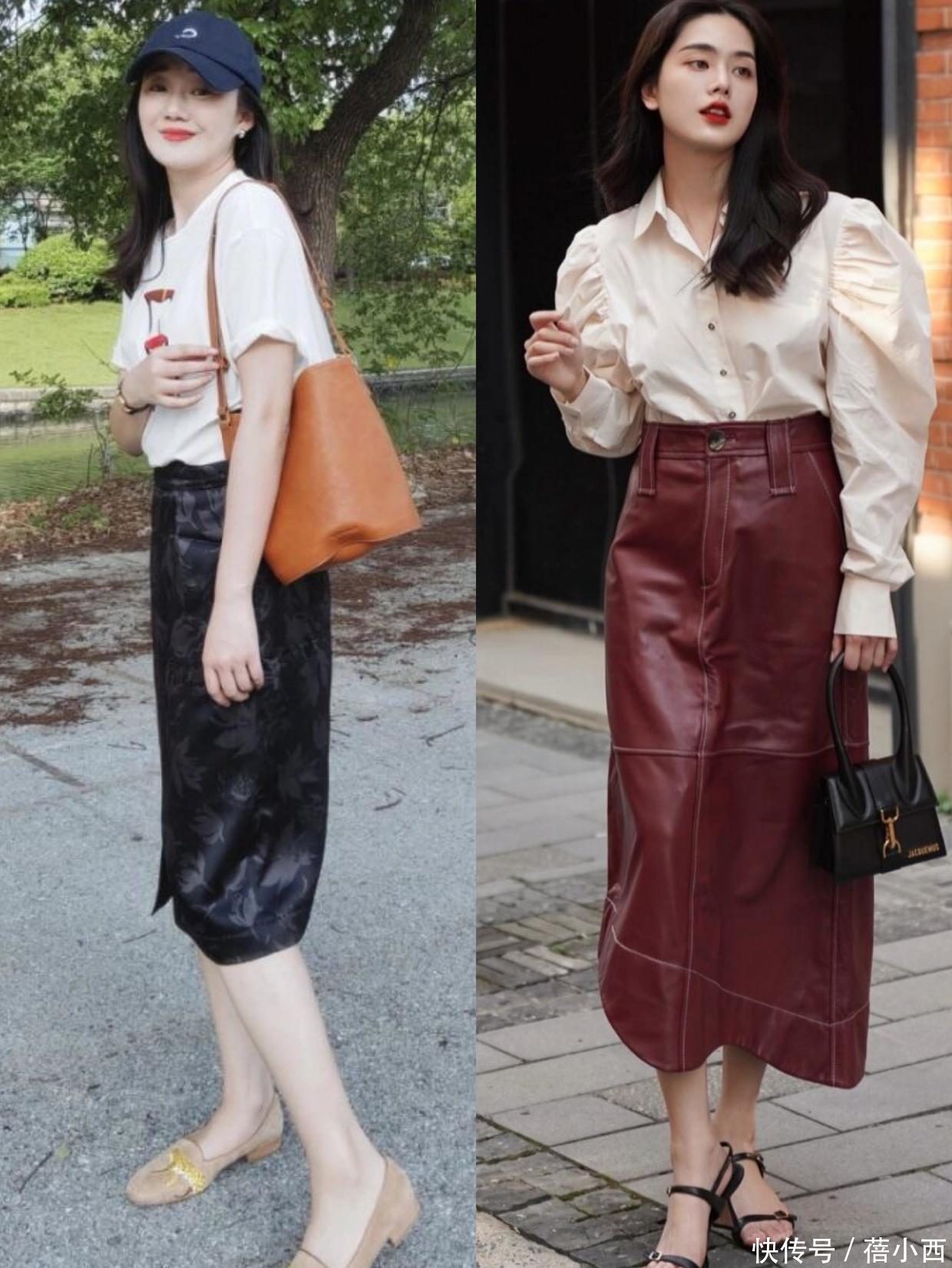 皮质半身裙看起来酷飒帅气,是不少潮酷girl弥远出行的首选。皮质面料质量硬朗光滑,会很好地修饰腿型。